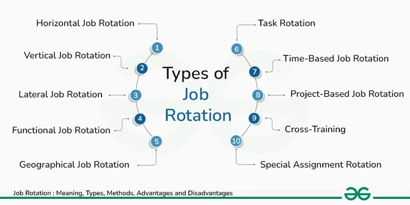 직무 순환은 목적과 방식에 따라 여러 가지로 나뉩니다.